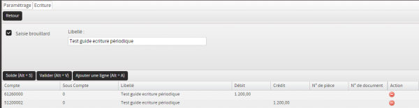 La page “modifier une écriture périodique” s’affichera alors sur l’onglet Paramétrage :